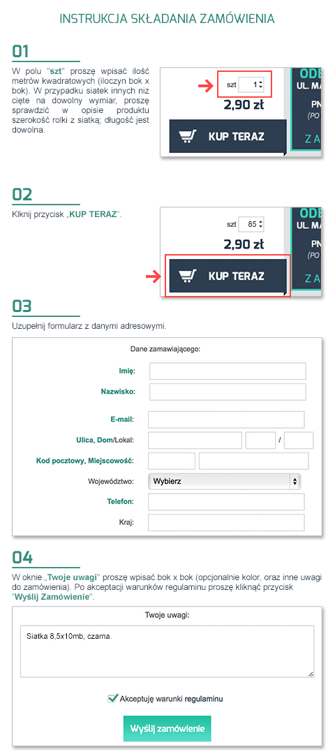 WYMIARY: siatki ochronne przeciw ptakom na sady wiśniowe o oku 25mm x 25mm docinamy z określonych szerokości rolek: