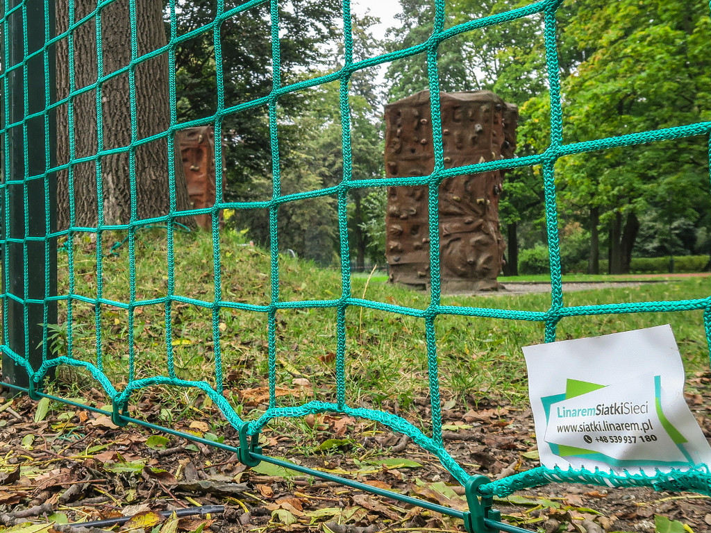 - ➡ Siatka o większych oczkach 100 x 100 idealnie sprawdzi się na obiektach do koszykówki, siatkówki czy piłki nożnej